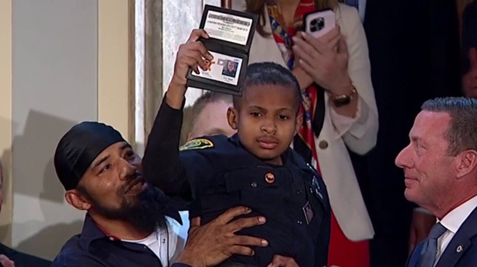 “Joining us in the gallery tonight is a young man who truly loves our police,” Trump told the crowd. “His name is DJ Daniel is 13 years old, and he has always dreamed of becoming a police officer. But in 2018, D.J. was diagnosed with brain cancer. The doctors gave him five months at most to live. That was more than six years ago.”