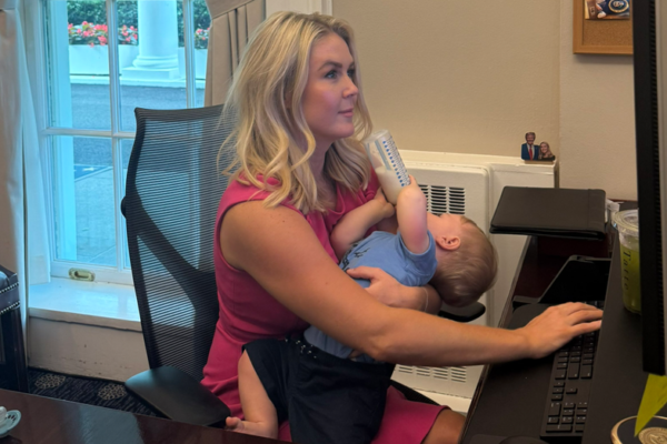 Photo of White House press secretary Karoline Leavitt feeding baby while working goes viral