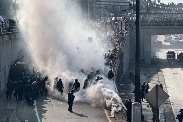 Rep. Maxine Waters had a federal building door slammed in her face during the L.A. migrant riots – and was caught on video taunting armed agents, asking if they planned to shoot her. Video shows Waters hurrying past graffiti-covered walls of a government building and up the steps to a plywood-shielded doorway where a small…