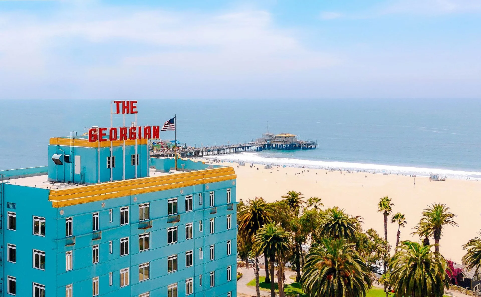 Originally opened in 1933, the Georgian Hotel has long been a fixture along Ocean Avenue. Its distinctive turquoise façade and Art Deco styling have made it one of Santa Monica’s most recognizable landmarks. Over the decades, it has hosted Hollywood elites, travelers, and design enthusiasts alike.