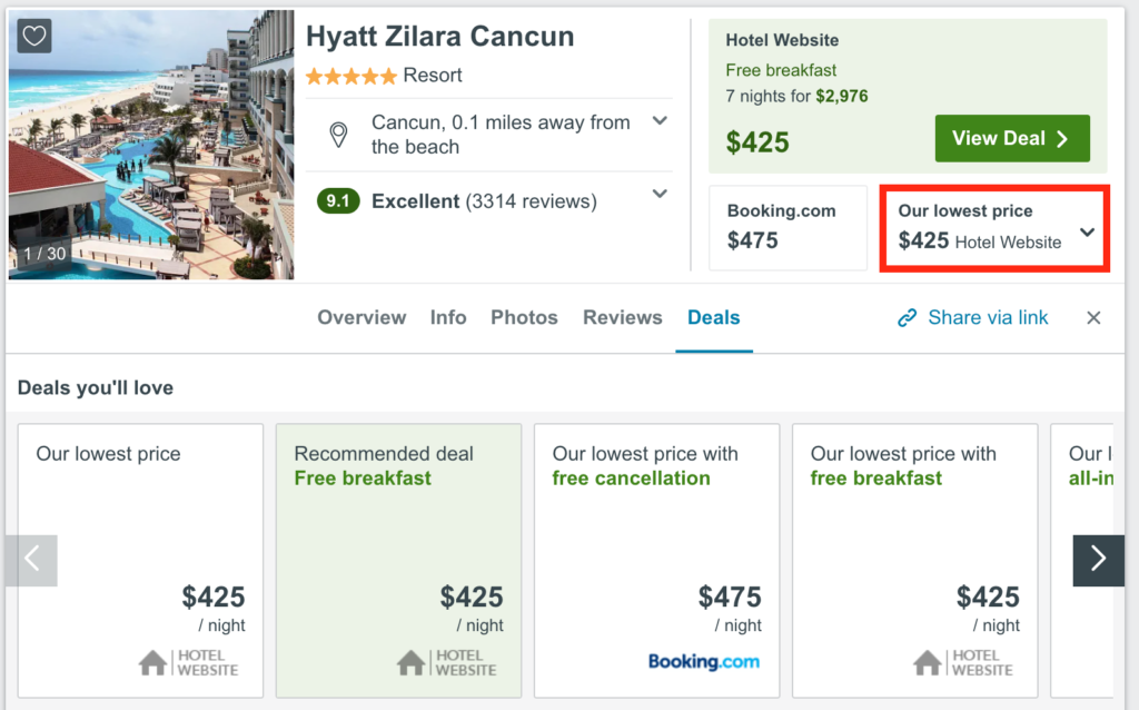 Step 2: Compare Hotel Prices